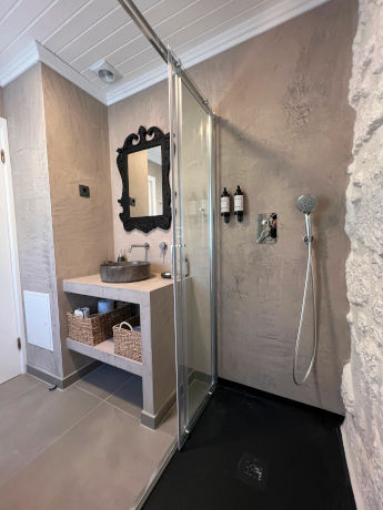 Composta por r/c e 1 piso superior onde os 3 quartos se situam com a vista deslumbrante para a Serra da Estrela. Acordar, abrir a janela, e ouvir os sons da natureza e deixar-se levar pelos ares do campo.